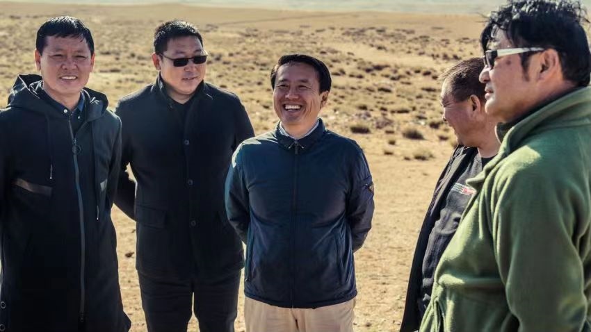 呼和巴特爾(中)正在《片警寶音》拍攝現(xiàn)場(chǎng)