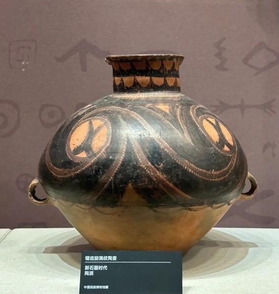 鋸齒旋渦紋陶壺 新石器時(shí)代 中國(guó)民族博物館藏。(民族畫報(bào)記者 鷹鴿 攝)