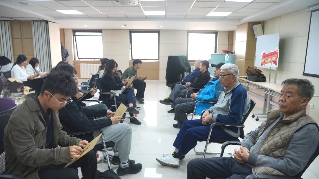 在街道黨群服務(wù)中心小課堂上,中央美院的同學(xué)認(rèn)真聆聽(tīng)社區(qū)老黨員姜德堂同志講述紅色革命故事,傳承革命精神。同學(xué)們還開(kāi)展了“送學(xué)上門(mén)”服務(wù),為地區(qū)老年人、企業(yè)單位送上“精神大餐”。