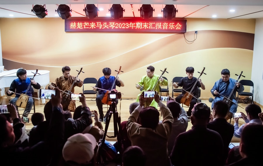 據(jù)了解,呼和浩特馬頭琴藝術(shù)綜合體,是由青年馬頭琴演奏家赫楚芒來發(fā)起成立的集青少年馬頭琴基礎(chǔ)培訓(xùn),成人馬頭琴演奏、馬頭琴師培訓(xùn)、馬頭琴大賽、馬頭琴展覽、藝考培訓(xùn)、馬頭琴直播等融為一體的馬頭琴藝術(shù)綜合體驗機構(gòu)。內(nèi)蒙古民族文化藝術(shù)研究院非物質(zhì)文化遺產(chǎn)研究所經(jīng)組織相關(guān)專業(yè)學(xué)者考察考核后,上報研究院審核批準(zhǔn)呼和浩特馬頭琴藝術(shù)綜合體為內(nèi)蒙古非物質(zhì)文化遺產(chǎn)(馬頭琴)傳承基地。