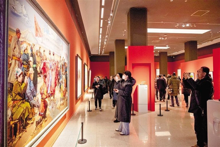 12月30日,元旦假期第一天,中國(guó)美術(shù)館內(nèi)“蒙古馬精神——內(nèi)蒙古美術(shù)攝影作品展”前來觀展的觀眾絡(luò)繹不絕。展出的130多件藝術(shù)作品生動(dòng)反映了內(nèi)蒙古各族人民牢記囑托、感恩奮進(jìn),努力完成習(xí)近平總書記交給內(nèi)蒙古的五大任務(wù)和全方位建設(shè)模范自治區(qū)的火熱實(shí)踐,全面展示了內(nèi)蒙古壯美和美善美、可信可親可愛的新時(shí)代形象。