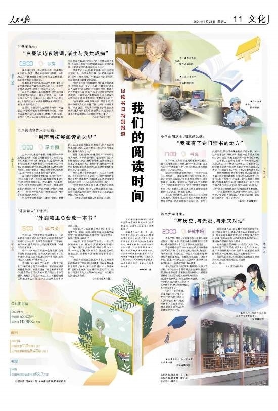 閱讀是什么?是一頁一卷,傳承千年文脈;是出行忙碌,隨身攜帶的星辰大海;是廣袤山鄉(xiāng),指引孩子們成長的燈塔;也是靜謐時光,陪伴無數(shù)個日夜的詩和遠方……第二十九個世界讀書日,我們關(guān)注多種多樣的閱讀時間,這些鮮活的場景展現(xiàn)著當(dāng)下人們閱讀生活的方方面面。讓我們從不同行業(yè)、不同年齡的讀者視角,感受文明的印記,見證時代進步的力量。