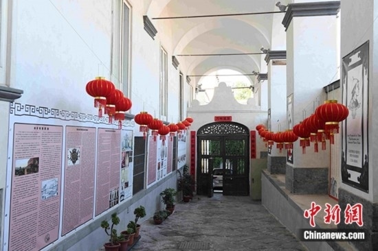 圖為6月17日拍攝的“中國學院”舊址,門廊兩側都懸掛著中式紅燈籠,有馬國賢和那不勒斯東方大學變遷史的展覽。 中新社記者 李洋 攝