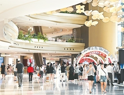 游客在cdf三亞國際免稅城C區(qū)全球美妝廣場游覽購物。中免集團(tuán)供圖