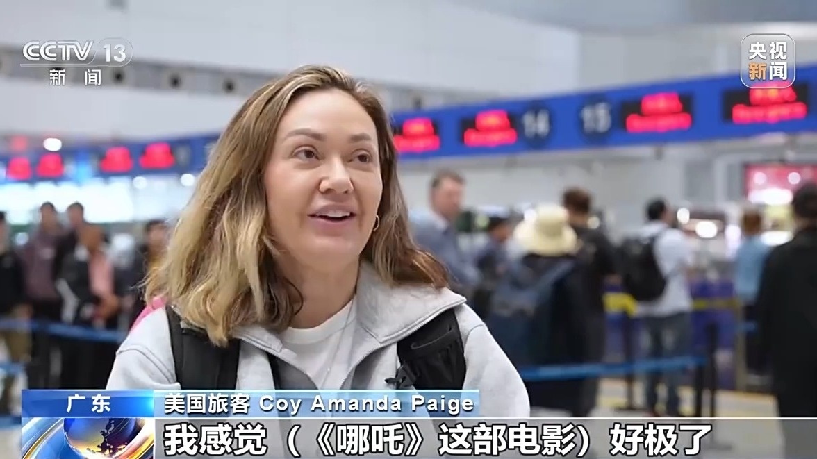 美國(guó)旅客 Coy Amanda Paige:我來(lái)自美國(guó),我感覺(jué)《哪吒》這部電影好極了,我想讓我女兒看,我想她會(huì)喜歡的。