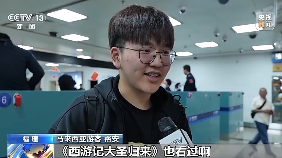 馬來(lái)西亞游客 裕安:第一集的《哪吒》我有看過(guò),《西游記大圣歸來(lái)》也看過(guò)啊,就很喜歡它們的特效之類,《黑神話悟空》也打完了。(總臺(tái)央視記者 劉小月 廣東站 福建站)