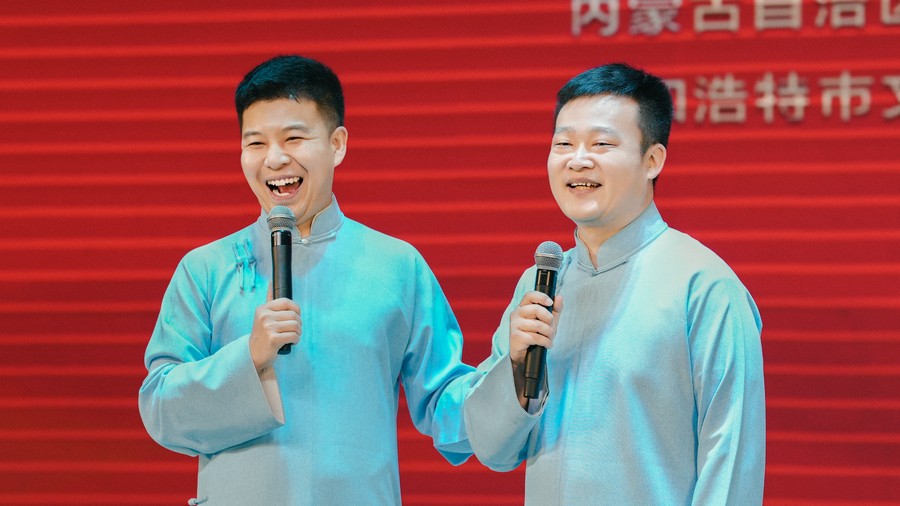 演出在舞步奔放、節(jié)奏明快的群舞《輝煌》中拉開(kāi)帷幕,文藝志愿者們各展才藝,節(jié)目形式多樣,涵蓋了歌舞、小品、雜技、二人臺(tái)、呼麥等多種藝術(shù)形式。相聲《開(kāi)心一刻》幽默詼諧,演員妙語(yǔ)連珠,引得觀眾笑聲不斷;小品《一路風(fēng)情走青城》聚焦日常點(diǎn)滴,用接地氣的故事展現(xiàn)呼市新風(fēng)貌,讓人倍感親切;歌曲《請(qǐng)到草原來(lái)》《歌在飛》《歌游內(nèi)蒙古》,文藝志愿者們用嘹亮歌聲傳遞對(duì)家鄉(xiāng)、對(duì)祖國(guó)的熱愛(ài);二人臺(tái)對(duì)唱《掛起紅燈拜新年》、呼麥《馬群贊》飽含深情;藝體表演《武動(dòng)乾坤》、雜技《鍋碗瓢盆交響曲》創(chuàng)意十足,現(xiàn)場(chǎng)驚嘆聲此起彼伏;獨(dú)舞《雄鷹》以剛勁的肢體語(yǔ)言,詮釋鷹擊長(zhǎng)空磅礴氣勢(shì);《舞蹈美草》用輕盈的舞步展現(xiàn)原野的律動(dòng);最后,全體演員與觀眾齊聲合唱《我的祖國(guó)》,將演出推向最高潮。精彩的表演贏得了現(xiàn)場(chǎng)400多名觀眾的陣陣掌聲和歡呼聲,氣氛熱烈非凡。