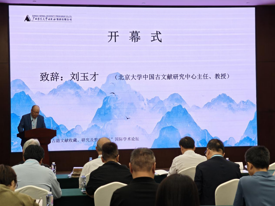 開(kāi)幕式上,北京大學(xué)中國(guó)古文獻(xiàn)研究中心主任、教授劉玉才強(qiáng)調(diào)古籍事業(yè)需多方協(xié)作,注重?cái)?shù)字化加工與創(chuàng)新活用。廣西師范大學(xué)黨委副書記、教授黃文韜表示,廣西師范大學(xué)將繼續(xù)支持古籍相關(guān)工作,讓古籍文字“活”起來(lái)。
