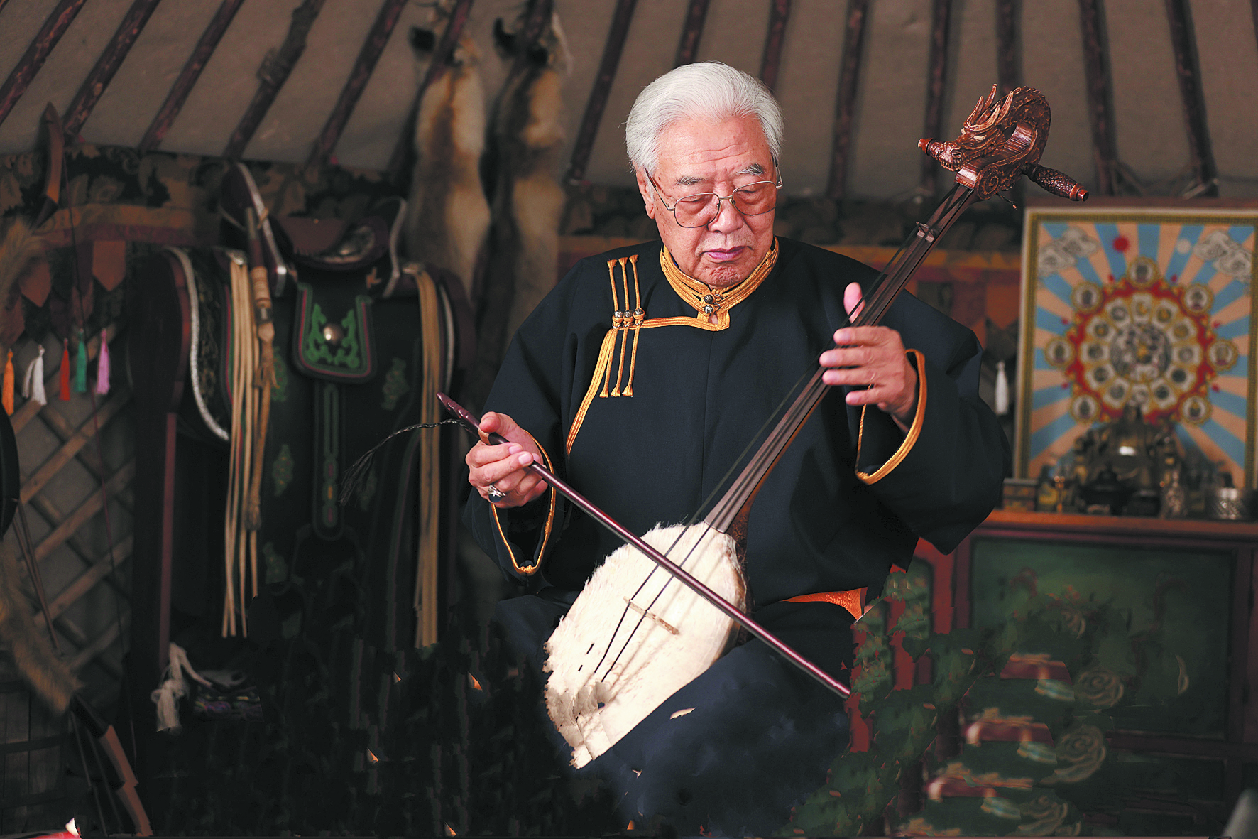 每每說起馬頭琴,86歲高齡的布林就來了精神。在與馬頭琴結(jié)緣70年的歲月里,他拜名師、收高徒,查古籍、訪民間,撥開了籠罩在馬頭琴上的重重迷霧……