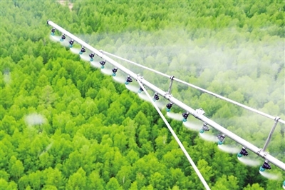 此時,隆隆的飛機轟鳴聲由遠及近,B-707H型直升機從林志偉調(diào)查記錄組的上空掠過,灑下帶狀藥霧,又飛向遠處的崇山峻嶺。 (內(nèi)蒙古日報記者 劉玉榮)