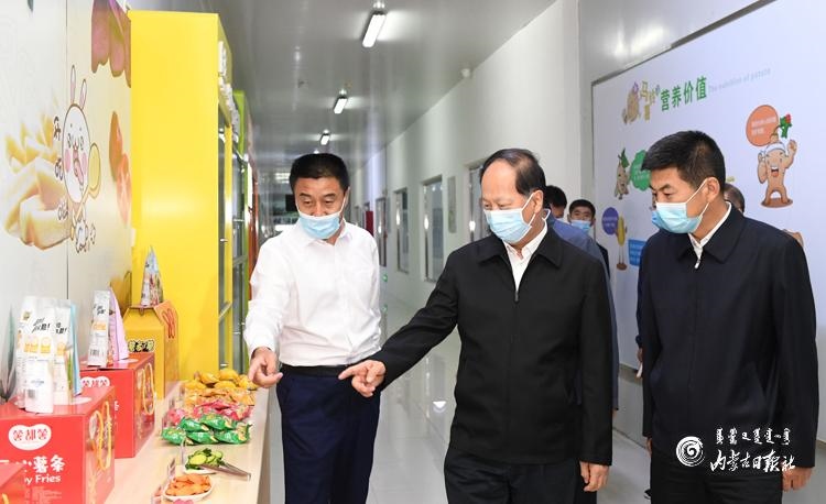 7月2日,自治區(qū)黨委書(shū)記、人大常委會(huì)主任石泰峰深入烏蘭察布市察右前旗內(nèi)蒙古薯都凱達(dá)食品有限公司,了解京蒙對(duì)口幫扶企業(yè)馬鈴薯產(chǎn)品生產(chǎn)銷(xiāo)售情況。內(nèi)蒙古日?qǐng)?bào)社融媒體記者 袁永紅 攝