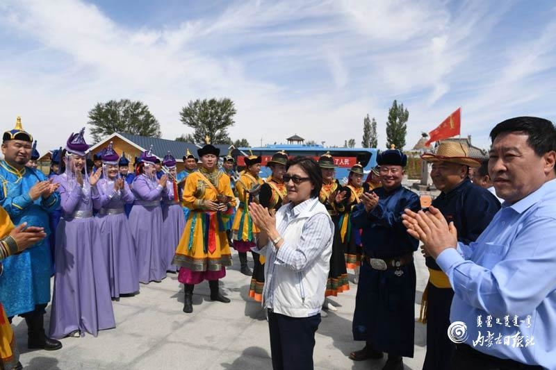 布小林來(lái)到烏審旗烏蘭陶勒蓋鎮(zhèn)巴音高勒嘎查,烏審旗烏蘭牧騎正在這里進(jìn)行惠民演出。她與農(nóng)牧民群眾一起認(rèn)真觀看演出,并與烏蘭牧騎隊(duì)員們親切交流,勉勵(lì)大家牢記習(xí)近平總書記的殷切囑托,永遠(yuǎn)做“草原上的紅色文藝輕騎兵”。她指出,烏蘭牧騎精神是我們擁抱新時(shí)代、奮進(jìn)新時(shí)代的重要精神動(dòng)力,要大力弘揚(yáng)烏蘭牧騎精神,緊緊依靠人民,不斷造福人民。