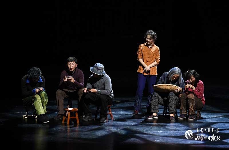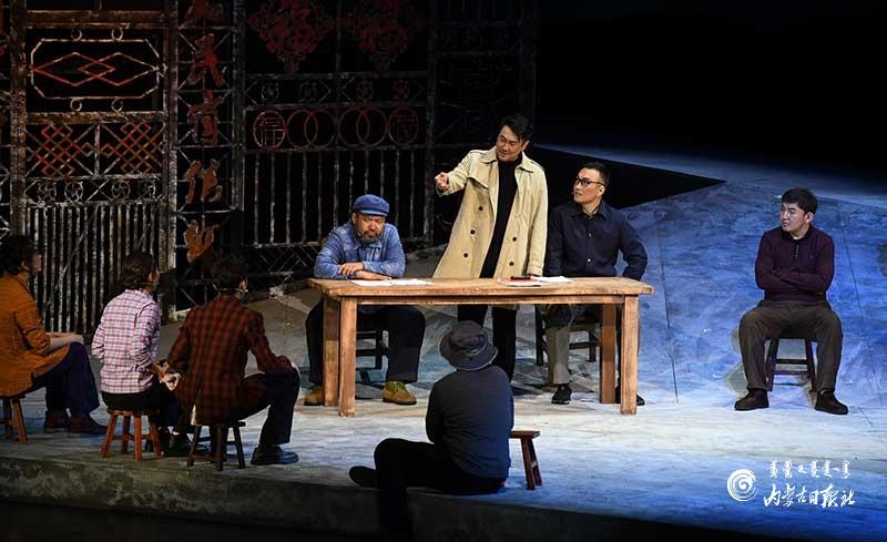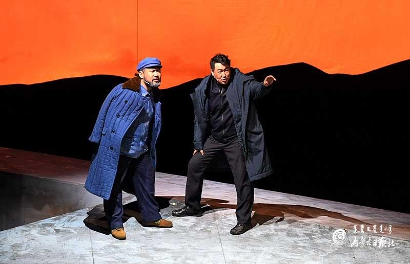 參演《紅手印》的都是來自草原的蒙古族演員,不僅要完成漢語的臺詞,還要熟練自然地講出大量內(nèi)蒙古西部方言對白。“對于話劇演員來說,臺詞功底太重要了。為了練好方言,我們好多演員早起練功的時候嘴里都念念有詞地說著西部方言。”演員烏仁朝魯門說。他扮演的新扎木村主任令人印象深刻,一個一心想帶百姓致富卻屢遭失敗的老黨員形象?!爸氨硌輾v史題材的話劇大多是從影像和資料了解人物,這部戲的題材貼近觀眾們的現(xiàn)實生活,必須接地氣才能得到認可。我通過寫人物小傳的方式,深挖村主任的人物個性和從失望到燃起希望的內(nèi)心世界,讓觀眾能夠認可這個形象。”烏仁朝魯門說。