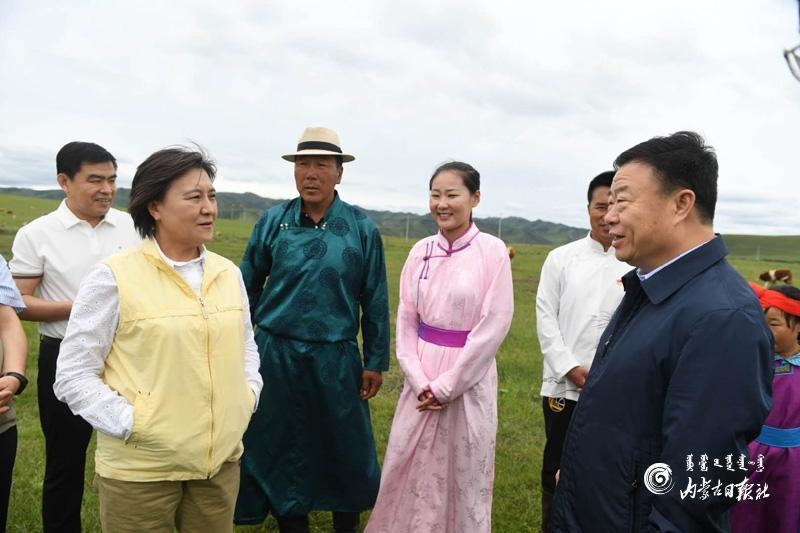 8月17日,自治區(qū)黨委副書記、自治區(qū)主席布小林在通遼霍林郭勒市軍馬場(chǎng)生態(tài)保護(hù)區(qū)聽取相關(guān)情況匯報(bào),詳細(xì)了解草原生態(tài)保護(hù)情況。內(nèi)蒙古日?qǐng)?bào)記者 韓卿立 攝