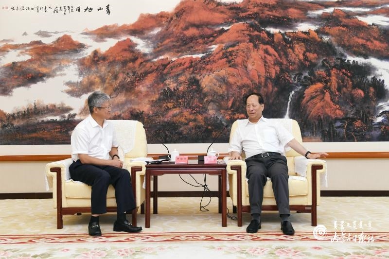 8月26日中午,自治區(qū)黨委書記、人大常委會主任石泰峰在呼和浩特會見雙良集團(tuán)有限公司總裁馬培林。內(nèi)蒙古日報社融媒體記者 袁永紅 攝