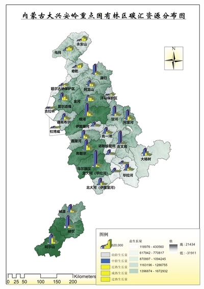 內(nèi)蒙古大興安嶺重點國有林區(qū)碳匯資源分布圖。