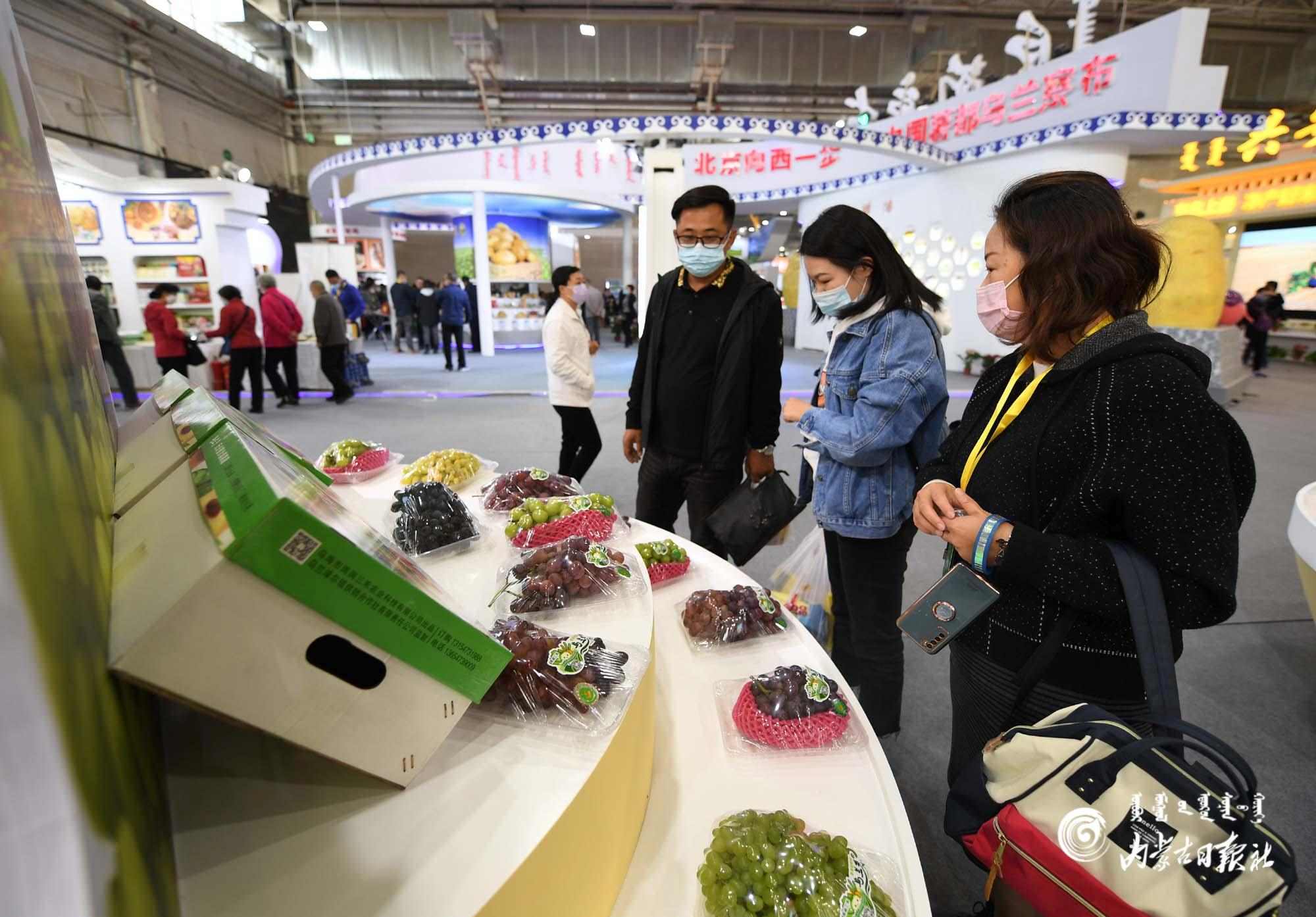 一走進(jìn)烏海展廳,一陣濃郁的葡萄香味撲面而來,色澤艷麗、珠圓玉潤的品相更是令人垂涎欲滴,路過的市民紛紛駐足詢價(jià)。