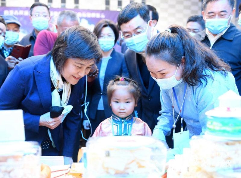 10月17日,自治區(qū)黨委副書記、自治區(qū)主席布小林,在全區(qū)推進(jìn)奶業(yè)振興暨民族傳統(tǒng)奶制品產(chǎn)業(yè)發(fā)展現(xiàn)場會上參觀各盟市民族傳統(tǒng)奶制品產(chǎn)品展示。內(nèi)蒙古日報記者 韓卿立 攝