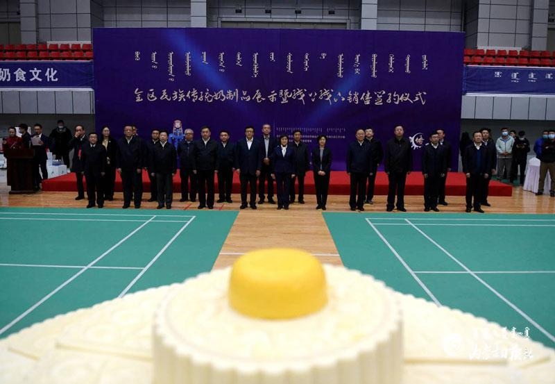 自治區(qū)黨委副書記、自治區(qū)主席布小林,國家市場監(jiān)督管理總局副局長孫梅君,自治區(qū)副主席歐陽曉暉出席活動,到鑲黃旗民族傳統(tǒng)奶制品產(chǎn)業(yè)園、檢測室以及部分民族傳統(tǒng)奶制品企業(yè)調(diào)研,參觀了各盟市民族傳統(tǒng)奶制品產(chǎn)品展示。與會領(lǐng)導(dǎo)們還共同見證了鑲黃旗乳香飄乳業(yè)公司制作的禮儀奶酪盤獲得“大世界基尼斯之最”紀(jì)錄認(rèn)證。