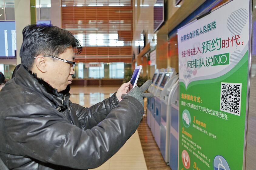 2016年1月,在內(nèi)蒙古自治區(qū)人民醫(yī)院 ,掛號(hào)可以通過掃描二維碼進(jìn)行預(yù)約,極大的方便了患者就醫(yī)。