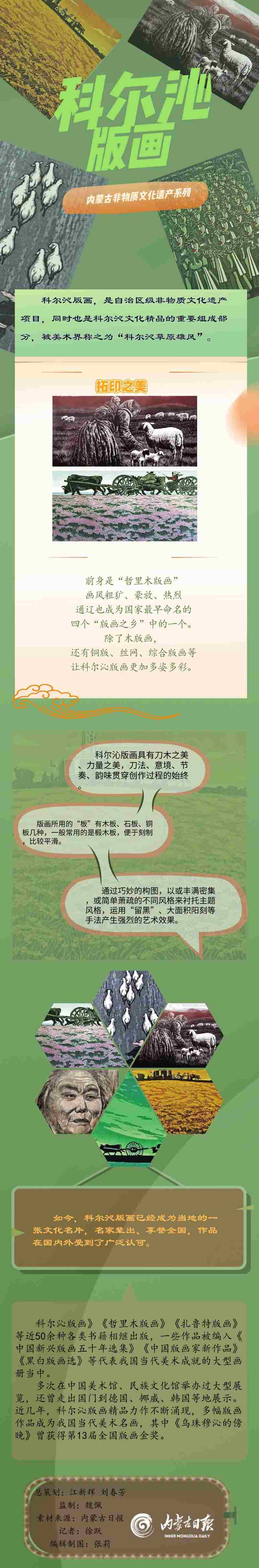 中國木刻版畫已有上千年史,自二十世紀三十年代起,創(chuàng)作版畫經(jīng)魯迅先生提倡后取得了巨大發(fā)展。內(nèi)蒙古科爾沁版畫繼承發(fā)揚中國版畫的精髓,兼收并蓄,創(chuàng)新發(fā)展,以雄渾、純樸、大氣、高雅而著稱,具有鮮明的草原特色。