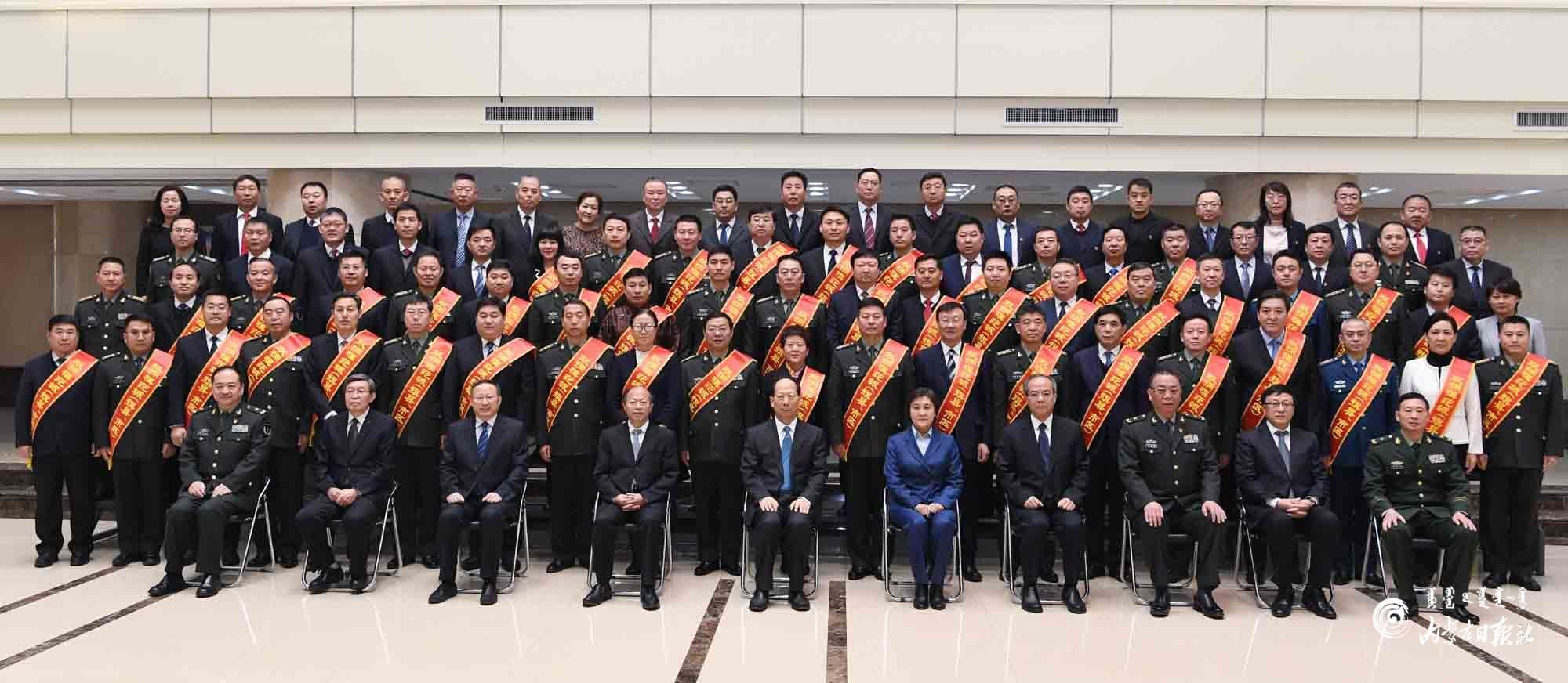 12月22日,石泰峰、布小林、李秀領等自治區(qū)領導在呼和浩特會見內(nèi)蒙古自治區(qū)雙擁模范城(旗縣、市區(qū))命名大會參會代表并合影。內(nèi)蒙古日報記者 袁永紅 攝