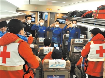 作為連通全國的運(yùn)輸動脈,在完成常規(guī)運(yùn)輸任務(wù)的基礎(chǔ)上,高鐵列車還承擔(dān)起了運(yùn)送醫(yī)務(wù)人員、醫(yī)療用品和保障物資的特別任務(wù)。內(nèi)蒙古援鄂醫(yī)療隊(duì)員兩批次乘坐G2438次列車從北京中轉(zhuǎn)赴武漢;五批次乘坐“草原動車”由鄂爾多斯回到呼和浩特?!八陀⑿鄢稣鳎佑⑿刍丶摇?,七次運(yùn)輸任務(wù),高鐵車隊(duì)以最高禮遇和精心的服務(wù),贏得醫(yī)療隊(duì)員們的紛紛好評?!爸x謝你們,出發(fā)時為我們送行,歸來時為我們唱起凱旋之歌?!贬t(yī)療隊(duì)隊(duì)員李紅娟緊緊握住列車長張雨的手說。