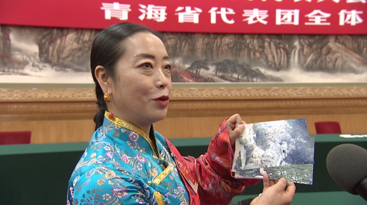 全國人大代表孔慶菊(藏族)給總書記展示了一組照片,其中有兩張分別是雪豹和荒漠貓,它們都是國家一級保護動物。