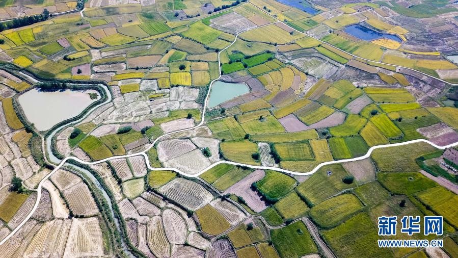 安徽省滁州市鳳陽(yáng)小崗村的田野景象(2018年9月27日攝,無(wú)人機(jī)照片)。新華社記者張端攝