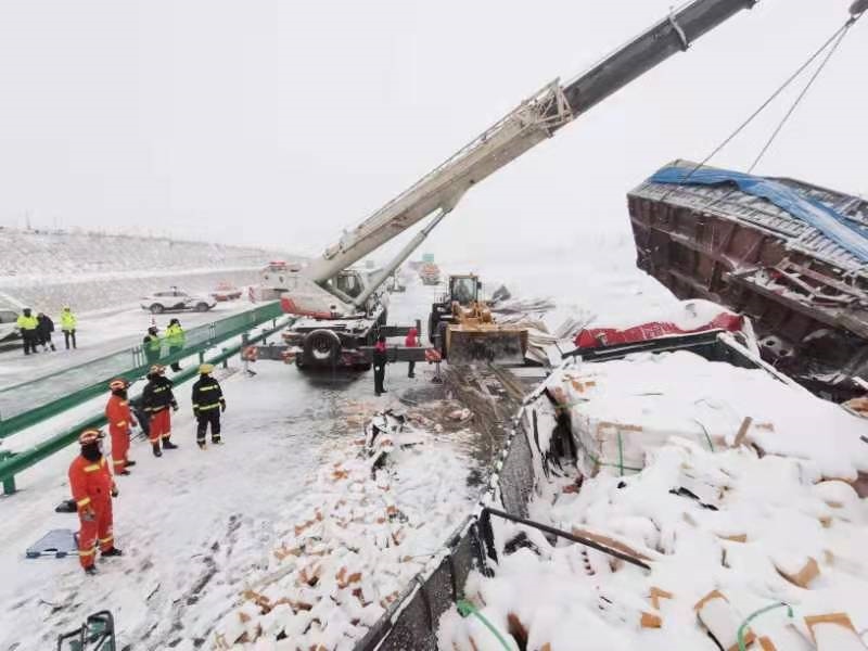 記者當晚從內(nèi)蒙古自治區(qū)應(yīng)急管理廳以及烏海市有關(guān)部門了解到,事發(fā)時,1輛重型半掛牽引車因雨雪天氣道路結(jié)冰發(fā)生側(cè)滑,致使后方行駛的另一輛重型半掛車采取措施不及發(fā)生碰撞,繼而引發(fā)多車連環(huán)相撞,致3死2傷。事故發(fā)生后,烏海市公安、消防、交警等部門立即趕赴現(xiàn)場展開救援工作。由于部分大貨車車頭后部天然氣儲罐破損發(fā)生泄漏,給現(xiàn)場處置救援帶來一定難度。消防部門通過破拆救援,成功將傷者抬至安全地帶,移交給現(xiàn)場120醫(yī)護人員緊急送往就近醫(yī)院治療。截至當日24時許,事故現(xiàn)場清理完畢。
