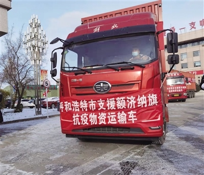 鑒于額濟(jì)納旗疫情防控任務(wù)依然艱巨、醫(yī)療物資用量仍然很大,呼和浩特市新冠病毒疫情聯(lián)防聯(lián)控暨新冠病毒疫情防控工作指揮部決定立即捐贈(zèng)第一批價(jià)值300萬元的防疫物資。在呼和浩特市新冠病毒疫情聯(lián)防聯(lián)控暨新冠病毒疫情防控工作指揮部的統(tǒng)籌部署下,指揮部物資保障組成員單位市財(cái)政局、發(fā)改委、衛(wèi)健委、商務(wù)局、交通局、紅十字會(huì)全力以赴、齊心協(xié)力,愛心企業(yè)、金融機(jī)構(gòu)積極捐贈(zèng),呼和浩特警備區(qū)傾力相助,讓愛心“大禮包”如期發(fā)貨。在發(fā)車現(xiàn)場,中國銀行股份有限公司內(nèi)蒙古自治區(qū)分行辦公室主任葛華表示,面對(duì)疫情,中國銀行內(nèi)蒙古分行支援抗疫責(zé)無旁貸,重任在肩必須挺身,義無反顧地與全區(qū)人民站在一起,守望相助、同心戰(zhàn)“疫”、共克時(shí)艱,在積極做好疫情防控和金融服務(wù)的同時(shí),主動(dòng)擔(dān)當(dāng)責(zé)任,通過紅十字會(huì)向呼和浩特市、阿拉善盟、二連浩特市捐款近百萬元,為地方開展疫情防控盡一份綿薄之力。金宇生物技術(shù)股份有限公司黨委副書記張占福告訴記者:“疫情無情,人間有愛。作為動(dòng)物疫苗生產(chǎn)企業(yè),能為我區(qū)抗擊疫情出一份力,奉獻(xiàn)一份愛,是企業(yè)應(yīng)盡的社會(huì)責(zé)任和義務(wù)?!痹诠部挂咔榈年P(guān)鍵時(shí)刻,內(nèi)蒙古顯鴻科技股份有限公司積極響應(yīng)市政府號(hào)召,在做好企業(yè)疫情防控的同時(shí),第一時(shí)間組織抗疫物資,用實(shí)際行動(dòng)踐行顯鴻科技“愛黨、愛國、愛企、愛家”情懷。短短幾天時(shí)間內(nèi),伊利、蒙牛、盛健、華訊等18家企業(yè)進(jìn)行愛心捐贈(zèng),大家同心同德、同向同行,堅(jiān)決助力自治區(qū)打贏這場疫情防控阻擊戰(zhàn)。