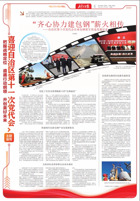 這里是習(xí)近平總書記指出的內(nèi)蒙古創(chuàng)造了“齊心協(xié)力建包鋼”歷史佳話的地方;這里曾見證了在黨和國家領(lǐng)導(dǎo)下,來自祖國四面八方的8萬多各族兒女匯聚塞外,以戰(zhàn)天斗地的氣魄和人定勝天的信念在北疆荒漠建成草原鋼城的火紅歲月。如今,在習(xí)近平新時代中國特色社會主義思想指引下,新一代包鋼人賡續(xù)紅色血脈,從2016年到2021年,用了五年時間,戰(zhàn)巨虧,渡難關(guān),以前所未有的改革勇力和百折不撓的攻堅勇氣,使企業(yè)起死回生、涅槃重生,從營業(yè)收入上創(chuàng)造出用五年時間再造兩個包鋼的奇跡,在內(nèi)蒙古這片熱土上續(xù)寫了“齊心協(xié)力建包鋼”的新時代篇章。