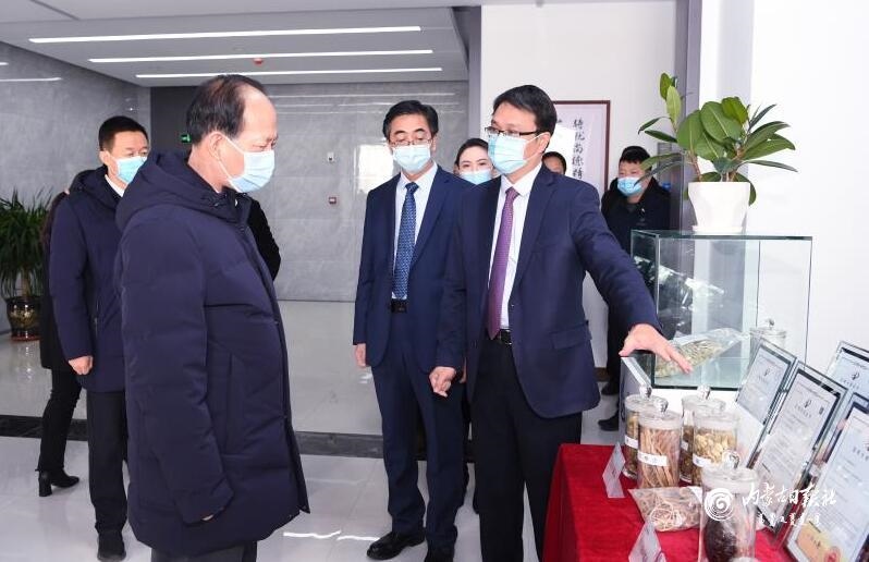 12月16日,自治區(qū)黨委書記、人大常委會主任石泰峰來到鄂爾多斯市高新技術開發(fā)區(qū),了解尚德艾康藥業(yè)項目建設研發(fā)情況。內(nèi)蒙古日報社融媒體記者 袁永紅 攝