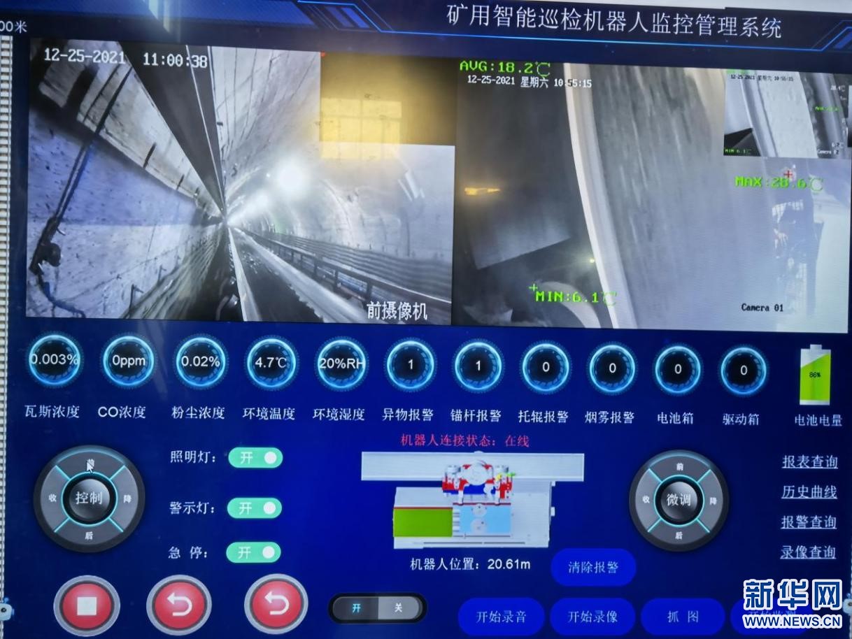 25日,在鄂爾多斯市麻地梁煤礦的輸煤傳送帶上,一臺礦用AI(人工智能機器人)“打工人”身著藍色“工衣”,行進在運輸皮帶上,它依靠一雙10CM大的“眼睛”,敏銳觀察著皮帶上源源不斷傳送的煤炭,并檢查異物。它身上安裝了高精度傳感器,可以實時將瓦斯、二氧化碳、粉塵濃度傳回麻地梁煤礦智能調(diào)度集控中心。