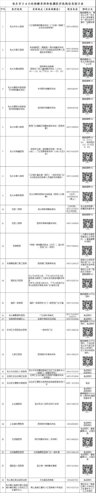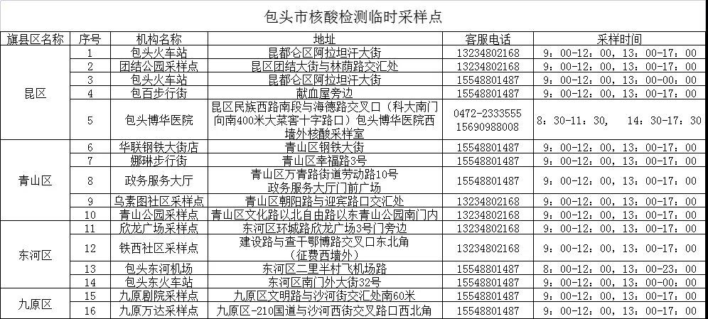 相關公示:包頭市24小時核酸采樣檢測機構和臨時采樣點公示
