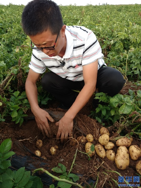 李亞平在查看馬鈴薯的生長情況。新華網(wǎng)發(fā) (受訪者供圖)