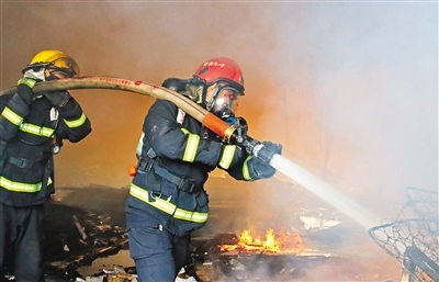 然而,與一般的火災(zāi)現(xiàn)場不同,這次他們遭遇到前所未有的復(fù)雜情況——葡萄糖遇火即熔化成糖漿,飛濺的火苗噼里啪啦從各方擊來,刺鼻的氣體到處彌漫,令人窒息。四面是濃煙和熊熊烈火,水槍噴出的水瞬間變成水蒸氣,讓人眼前一片模糊,頭頂上掉落的鐵皮隨時會劃傷他們。