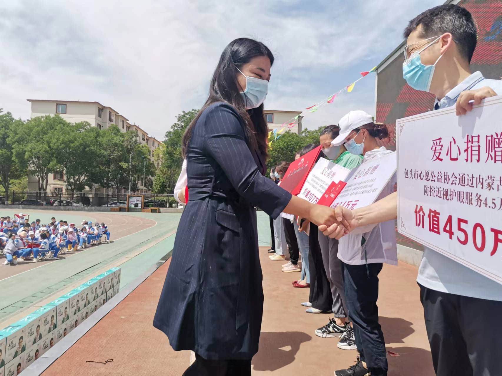 同時,自治區(qū)團委、內(nèi)蒙古青基會以及愛心單位為內(nèi)蒙古農(nóng)業(yè)大學附屬中學捐贈建設(shè)愛眼小屋和愛眼包以及后期視力防控訓練、弱視訓練、單光眼鏡和近視防控家長課堂等項目。