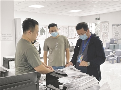 李杰(右)到社區(qū)實(shí)地查看疫情防控重點(diǎn)人員檔案。