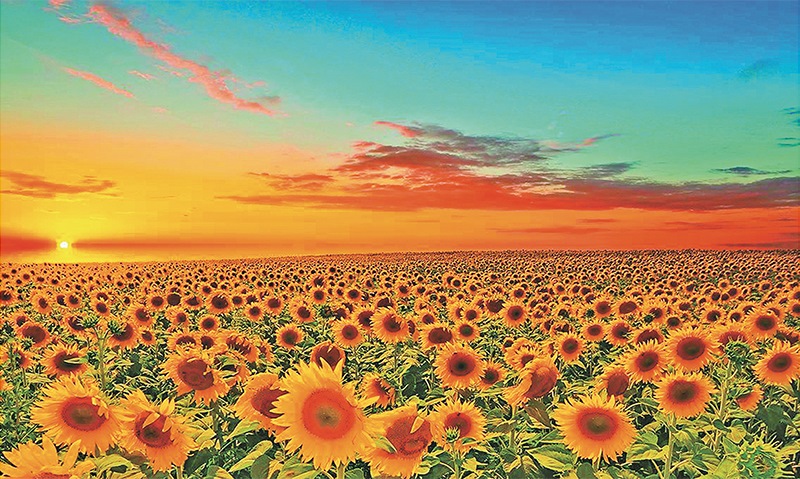 全國葵花籽產(chǎn)量約70%來自內(nèi)蒙古。圖為巴彥淖爾市向日葵種植區(qū)。 內(nèi)蒙古日報社供圖