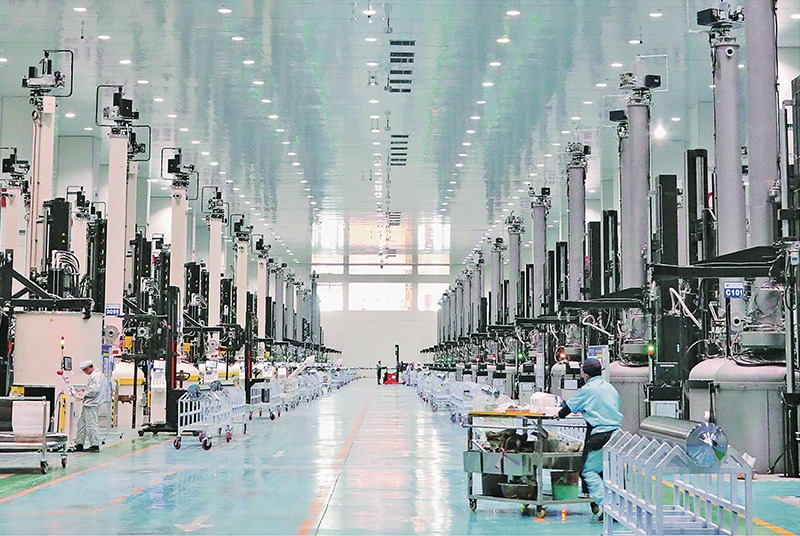 內(nèi)蒙古與時俱進優(yōu)化能源資源開發(fā)利用方式,推動由化石能源大區(qū)向清潔能源大區(qū)轉(zhuǎn)變。圖為位于包頭市的雙良光伏產(chǎn)業(yè)園單晶硅生產(chǎn)車間(2022年10月20日攝)。