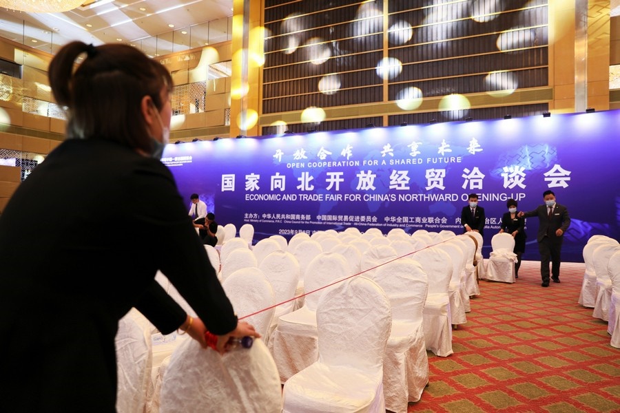 北疆新聞呼和浩特9月5日消息(記者 張楊)“目前,會場布置、搭建以及其他各項工作已全部就緒,預(yù)祝大會成功召開?!眹蚁虮遍_放經(jīng)貿(mào)洽談會會務(wù)總導(dǎo)演希樂木格5日上午向記者介紹,“第四屆中蒙博覽會暨國家向北開放經(jīng)貿(mào)洽談會”,將于6日下午在香格里拉大酒店召開。作為本次會議的服務(wù)機構(gòu),內(nèi)蒙古出版集團(tuán)漠尼公司將提供全方位的服務(wù),保障會議圓滿成功。