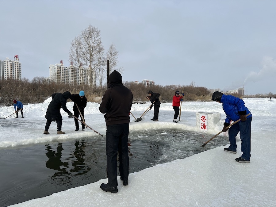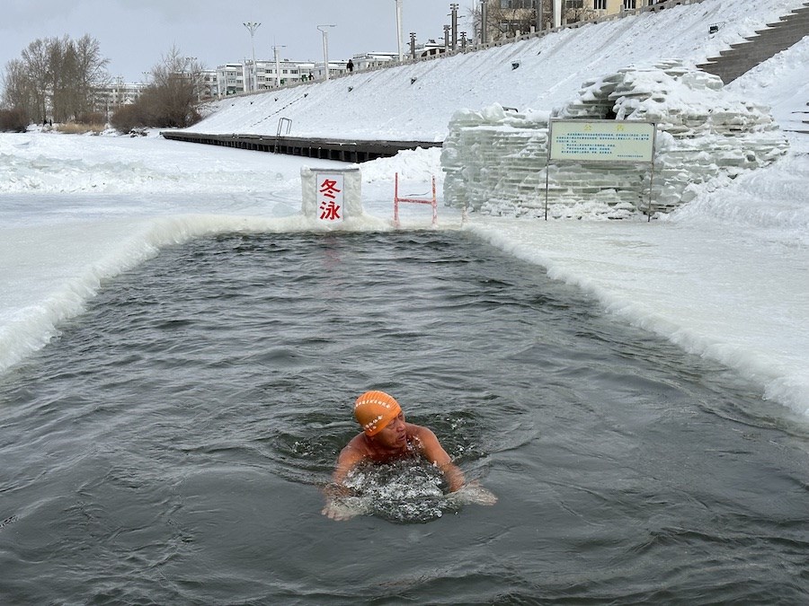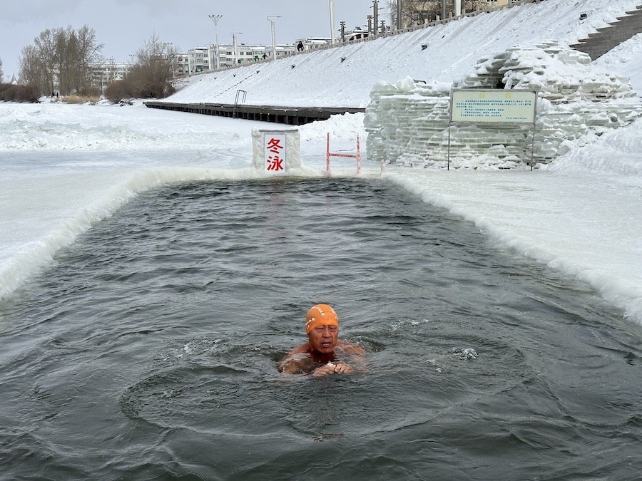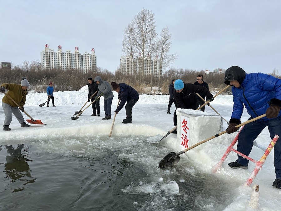 北疆新聞呼倫貝爾1月14日消息(記者 楊凈毓 李文華)1月中旬的內(nèi)蒙古呼倫貝爾,冰天雪地中,海拉爾冬泳協(xié)會在零下21℃的溫度下,鑿冰冬泳祝福第十四屆全國冬季運(yùn)動(dòng)會召開。