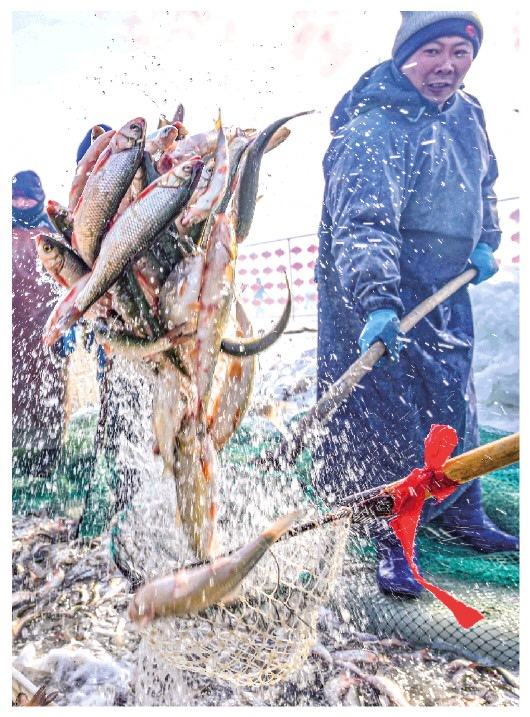 ▲1月13日,達(dá)里湖漁場的工作人員在撈魚裝箱。日前,內(nèi)蒙古達(dá)里湖冬捕旅游季在赤峰市克什克騰旗拉開帷幕。此次活動包括祭湖儀式、開湖捕魚、文藝展演等多個項(xiàng)目,吸引眾多游人前來觀看。新華社記者彭源攝