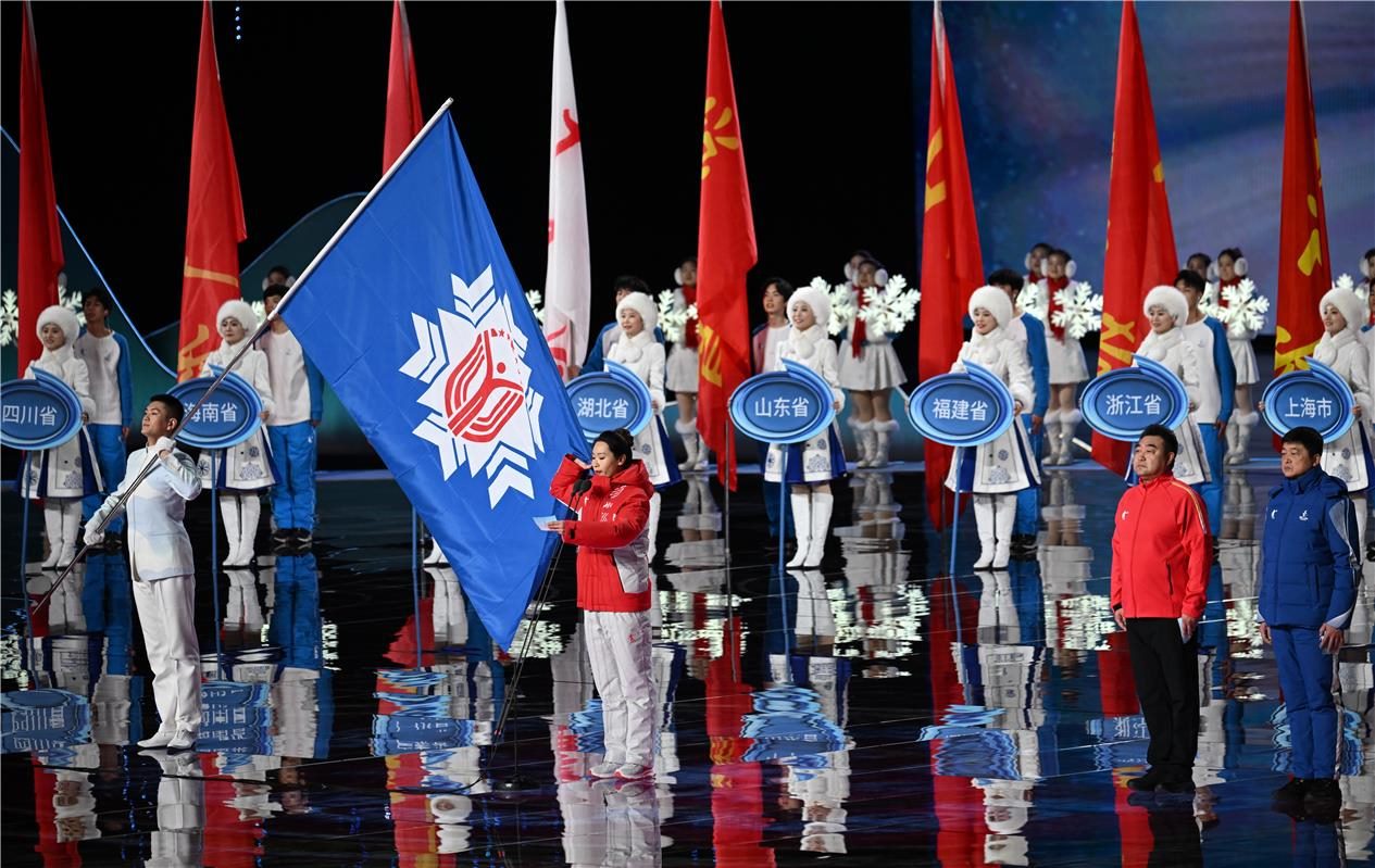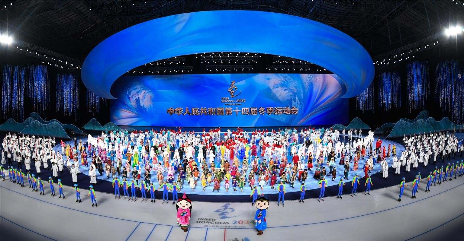 2月17日晚,第十四屆全國(guó)冬季運(yùn)動(dòng)會(huì)開(kāi)幕式在內(nèi)蒙古自治區(qū)冰上運(yùn)動(dòng)訓(xùn)練中心速滑館舉行。開(kāi)幕式分為開(kāi)幕儀式、文體展演兩大部分。
