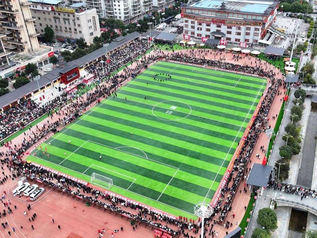 2月3日,觀眾在“村超”賽場(chǎng)等待活動(dòng)開始(無人機(jī)照片)。新華社記者劉續(xù)攝