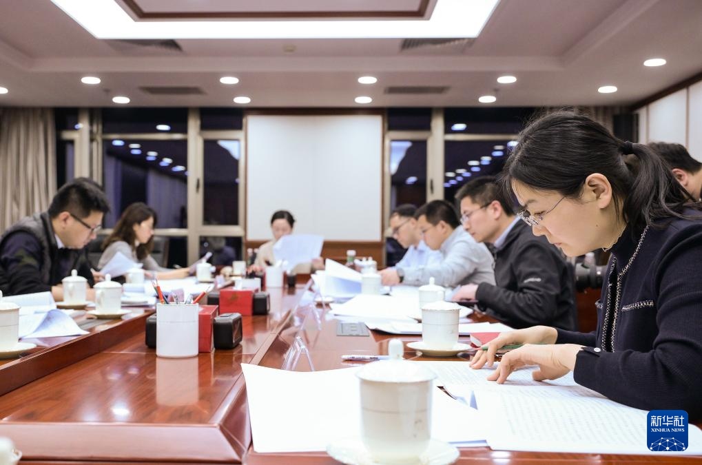 3月6日,財(cái)政部工作人員根據(jù)代表的意見建議對(duì)預(yù)算報(bào)告進(jìn)行對(duì)照、研究。新華社記者李賀攝