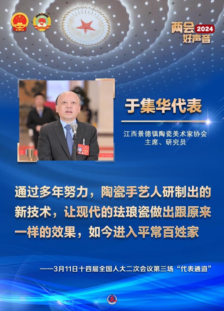 江西景德鎮(zhèn)陶瓷美術家協(xié)會主席、研究員于集華代表說,通過多年努力,陶瓷手藝人研制出的新技術,讓現(xiàn)代的琺瑯瓷做出跟原來一樣的效果,如今進入平常百姓家。