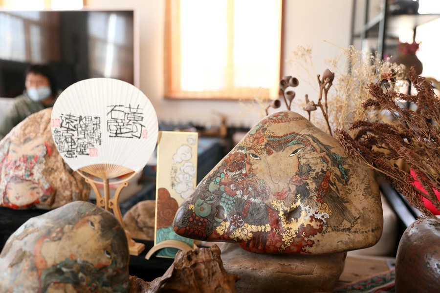 自2016年起,魯婷開始用黃河石畫的形式,講述母親河的故事。2018年,魯婷在西行客棧建立了自己的工作室,向社會(huì)各界免費(fèi)開放,用黃河石彩繪的方式,為北疆文化注入新的思想和內(nèi)涵。