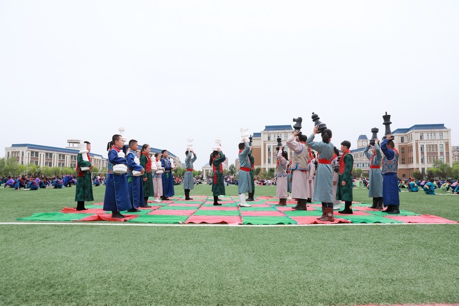 “今天參加4個‘千人文化’特色課程感到非常高興和開心。這4個課程讓我們的文化素養(yǎng)得到質(zhì)的提升,愉悅了身心?!蔽迥昙?25班的哈斯寶勒爾剛剛參加完特色課程展示。哈斯寶勒爾表示,這4個課程,比如玩象棋的話,可以提升自己的思維邏輯,讓自己的思路更加清晰,能夠提升學(xué)習(xí)成績;練習(xí)筷子舞,可以讓我們的心情變得更加愉悅,通過練習(xí)跳舞,讓我們身體的柔韌性更強(qiáng);唱江格爾,能鍛煉我們的唱歌能力,還能讓我們把非物質(zhì)文化遺產(chǎn)傳承下去;踢足球可以鍛煉我們的體能。